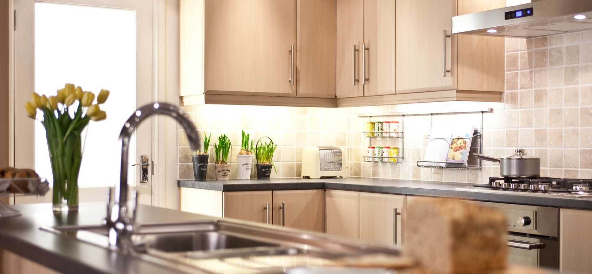 Кухня — еще одна комната, в которой крайне редко можно увидеть натуральные букеты. Причиной тому служат постоянные испарения от готовки пищи и в целом сухой воздух. В этом помещении семья проводит много времени.