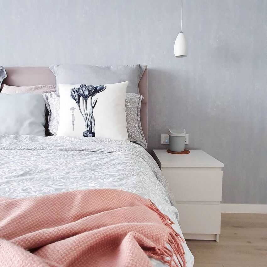 Северный лаконизм распространяется и на декор в спальне. Для украшения комнаты прекрасно подойдут hand-made предметы. В скандинавском стиле наиболее популярен текстильный декор в виде пледов и подушек с орнаментами. Также подойдут живые растения.