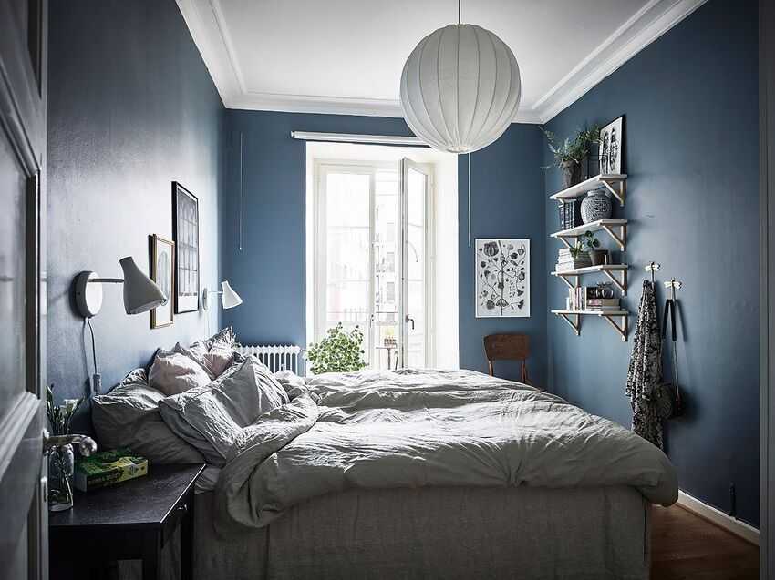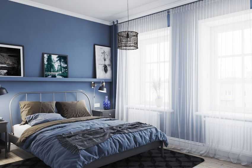 Синяя. Оттенки голубого нередко встречаются в спальнях. Синий действует успокаивающе. Поэтому он и является настолько актуальным в интерьерном оформлении спальни.