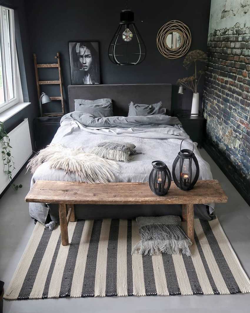 Северное влияние проявляется в деталях, поэтому полы в спальне часто украшают меховыми коврами или дорожками с этническими узорами.