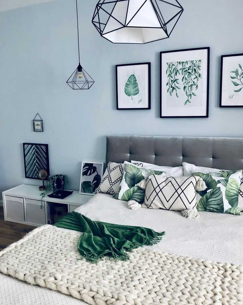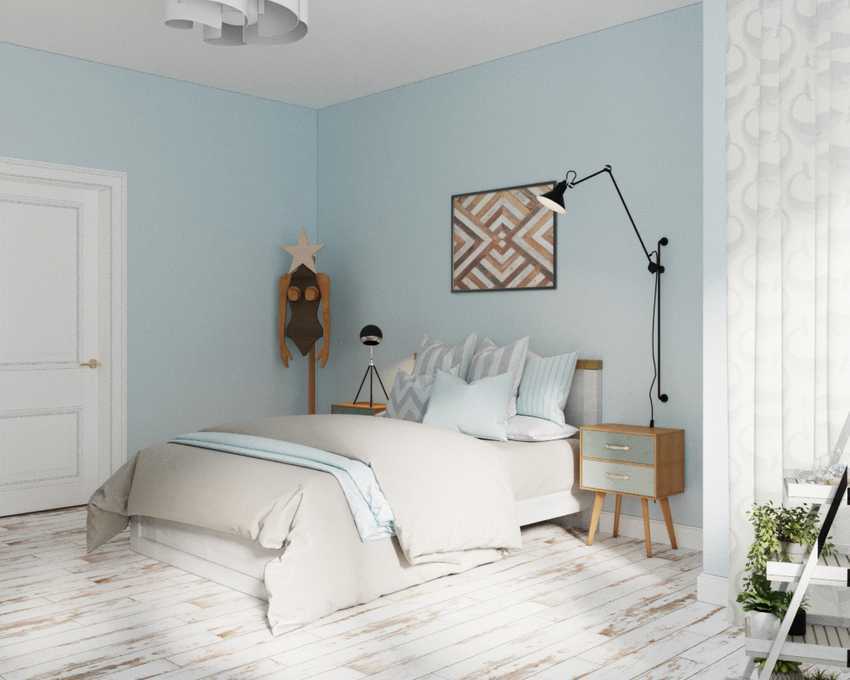 Этот естественный природный цвет отлично впишется в скандинавский дизайн спальни. Можно использовать такие оттенки как оливковый, мятный, фисташковый, сосновый, цвет лайма и другие.