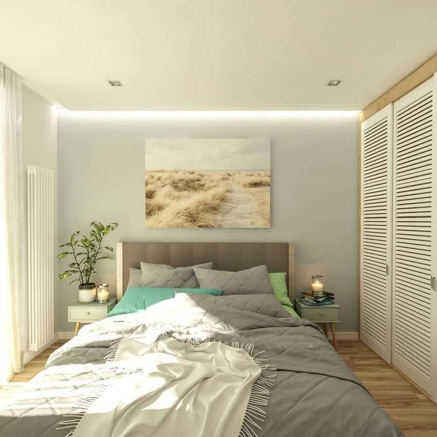 Светлая палитра цветов, лаконичная мебель с возможностью трансформации служит отличным решением для спальни небольшой площади. Настенные зеркала и качественное освещение позволят не только подчеркнуть стиль, но и визуально увеличить пространство.