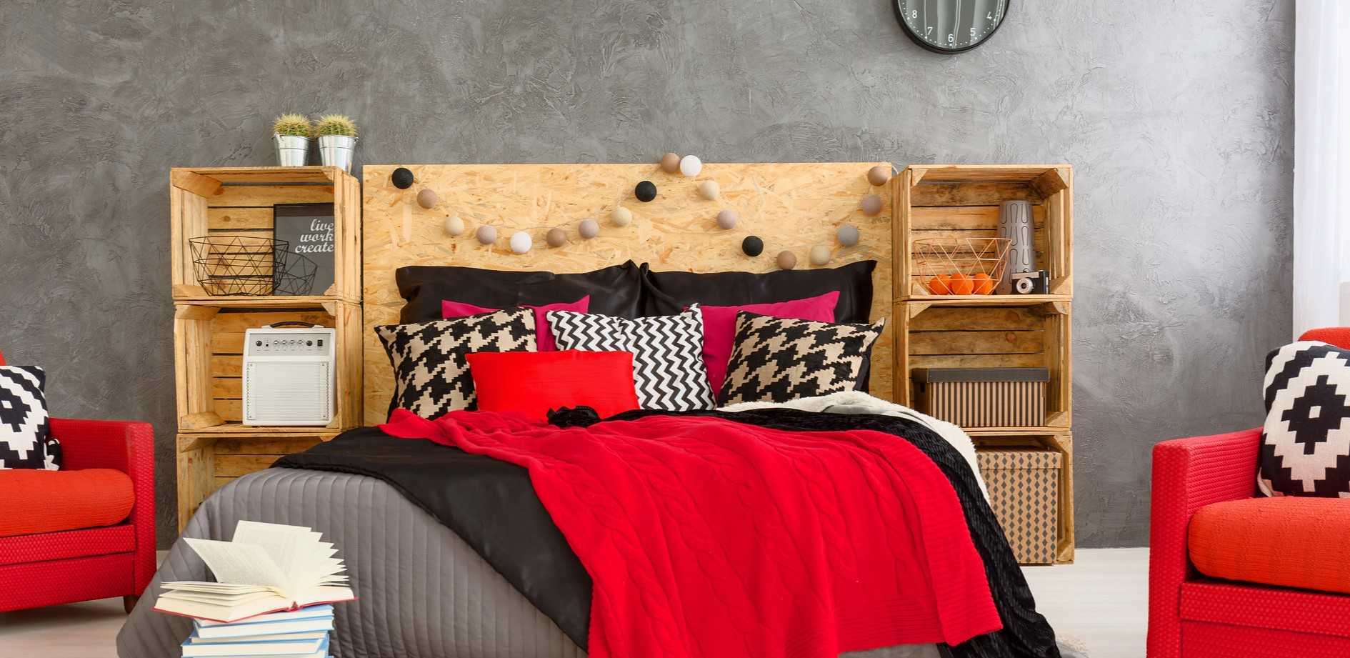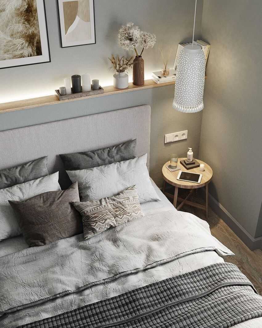 - в небольшой комнате следует отказаться от массивного изголовья кровати, на стене лучше разместить небольшие полочки для хранения мелочей и декора;