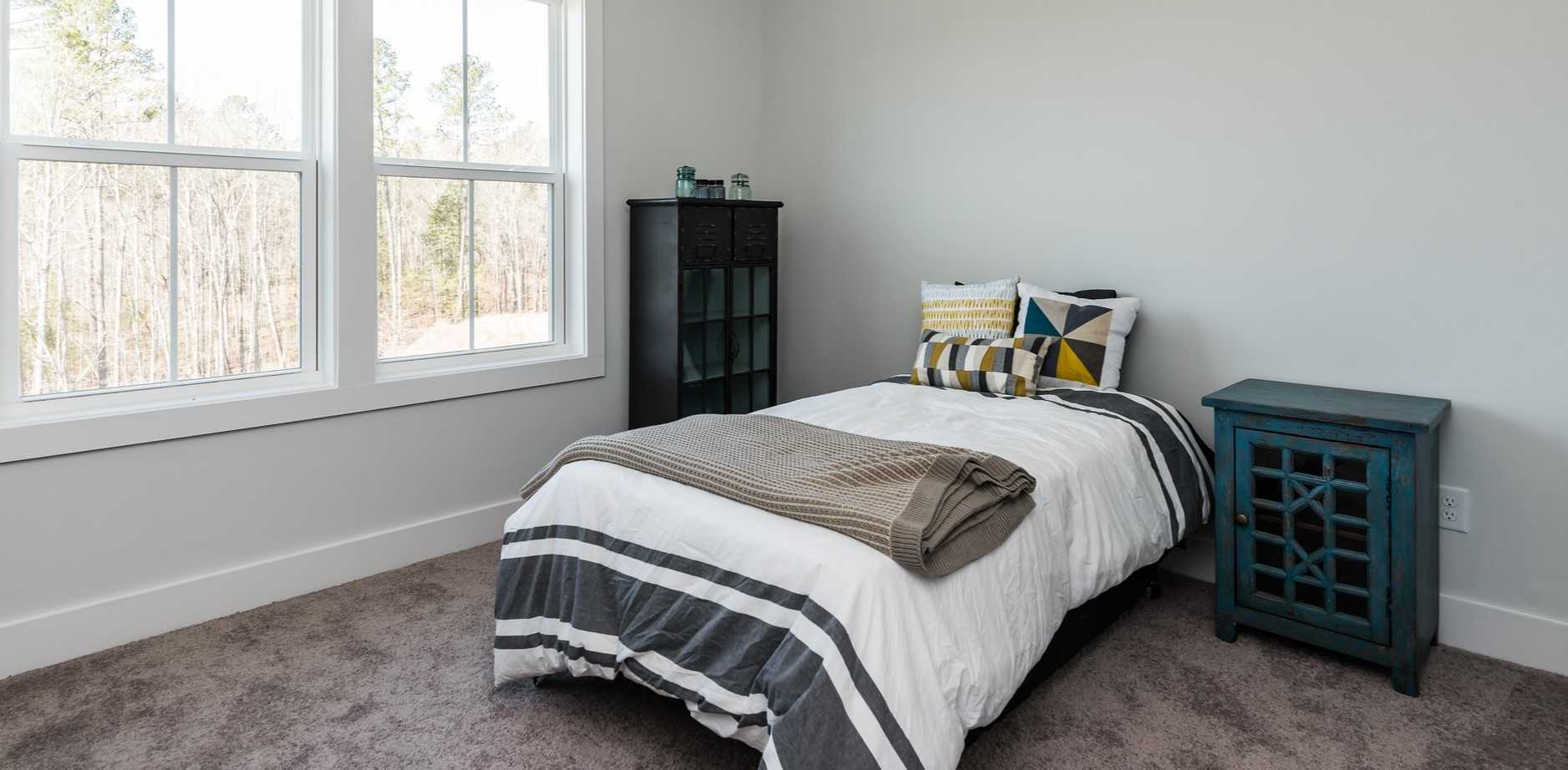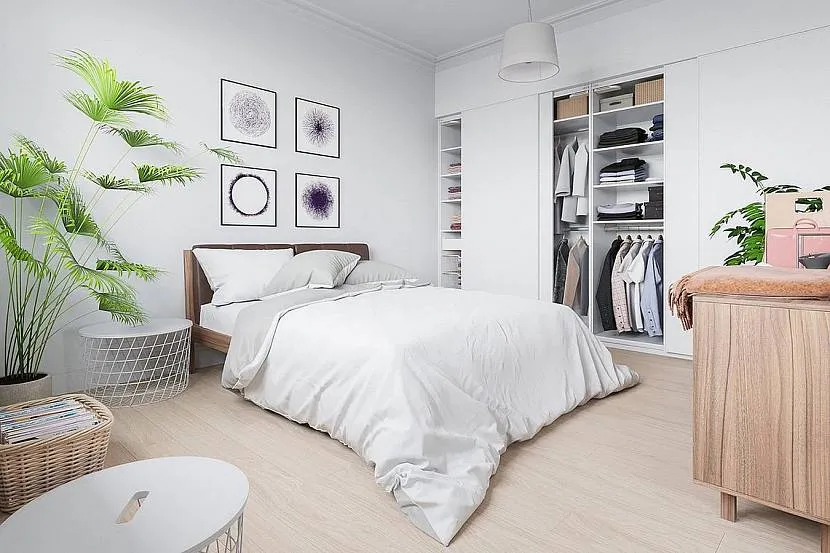Специалисты считают такую площадь наиболее комфортной для реализации нордического стиля. В такой спальне можно разместить большой шкаф для хранения вещей.