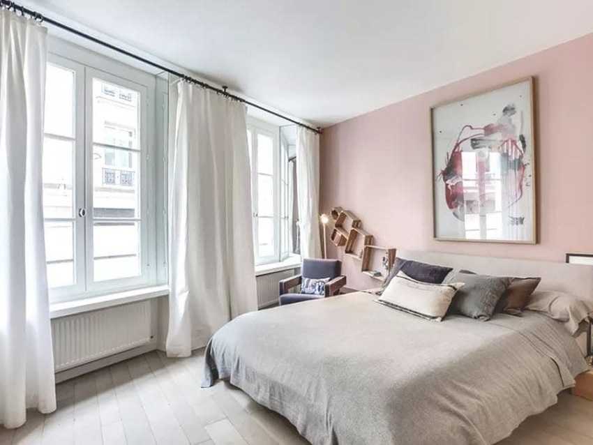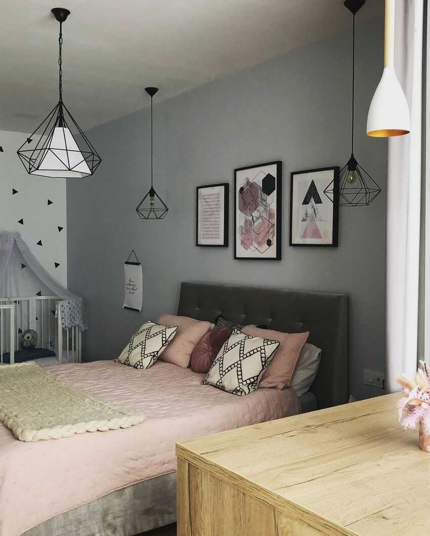 Розовая. Чуть менее актуальный цвет, зато позволяющий добиться оригинальности в дизайне спальни
