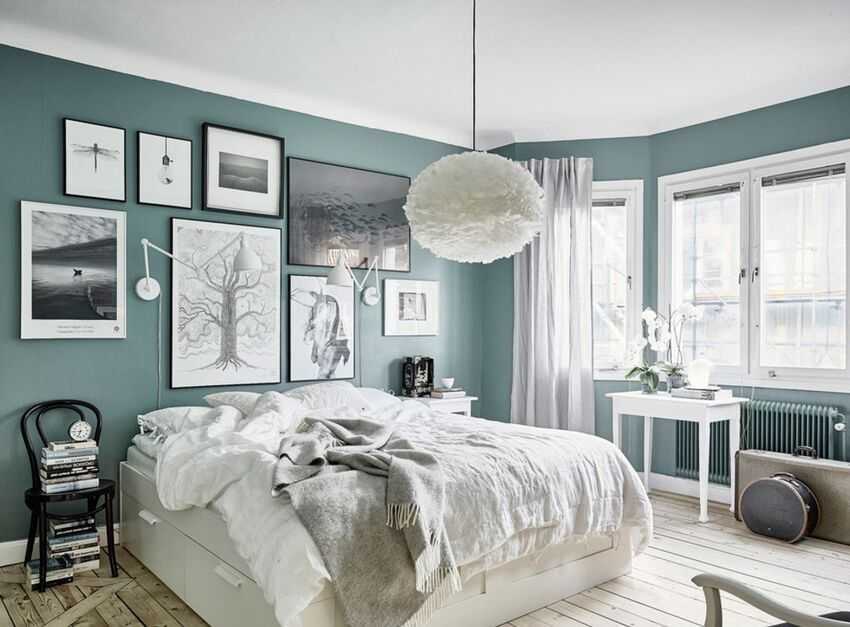 - Для создания атмосферы безмятежности, свойственной нордической культуре, используйте для стен пастельные оттенки зеленого и голубого.