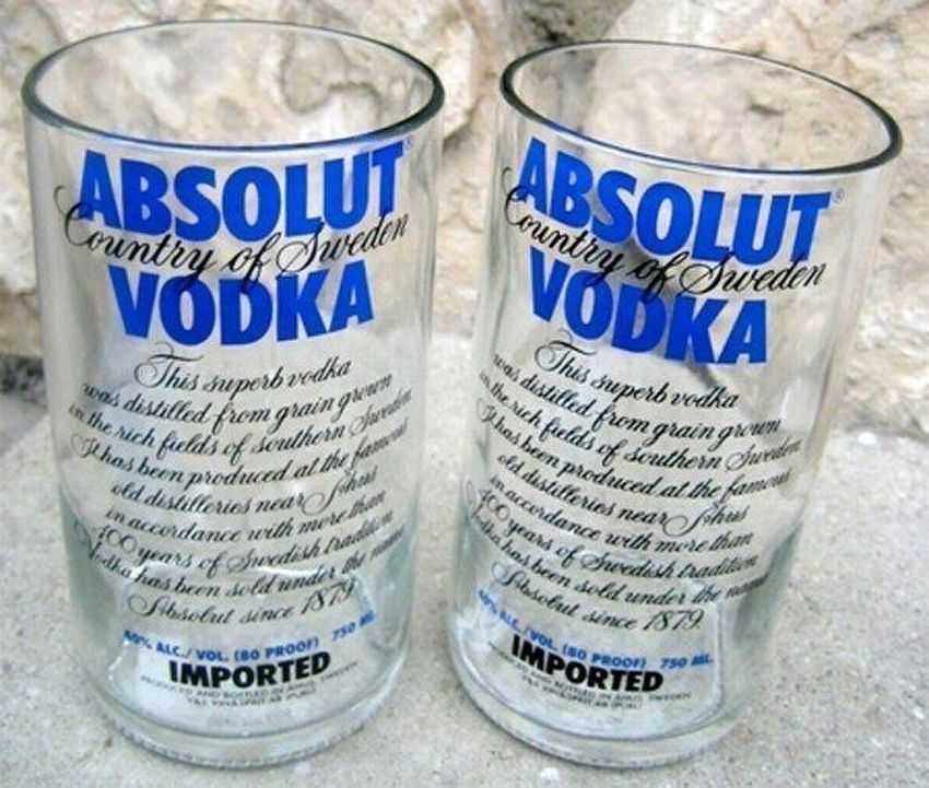 Бутылки с водки «Абсолют» с множеством букв придадут вашим стаканам оригинальный вид.