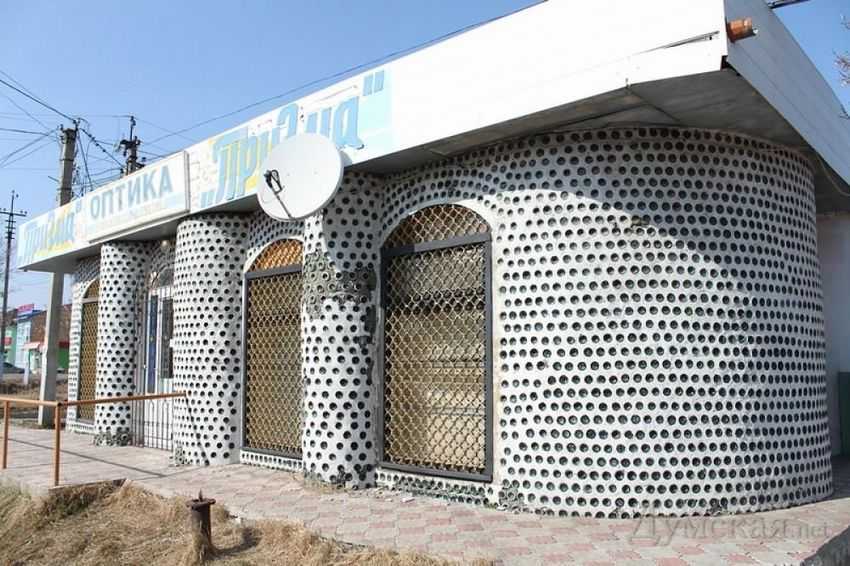 Целый магазин построили в Одессе из пустых бутылок.