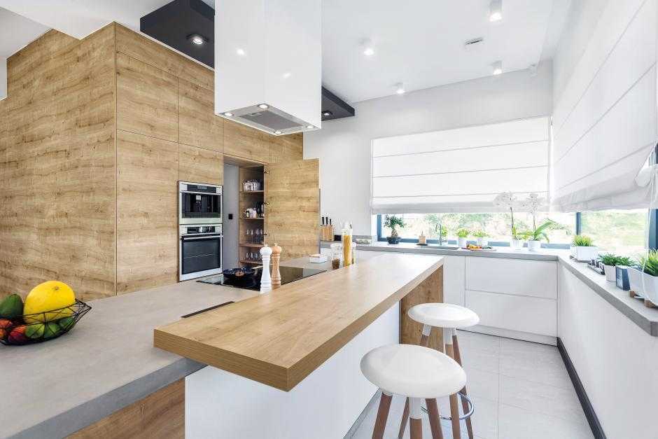— идеальный вариант даже для небольшой кухни, с возможностью разместить обеденный стол или остров.
