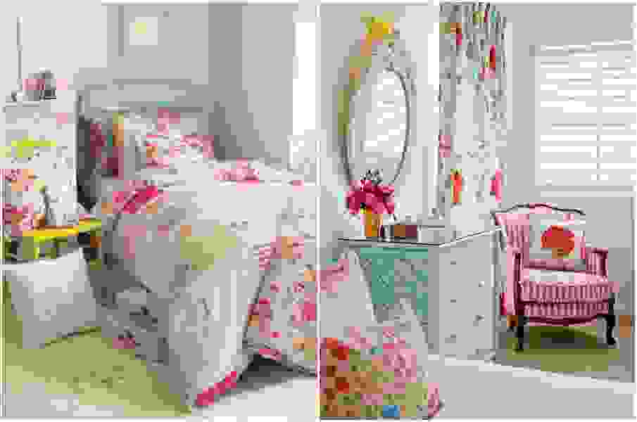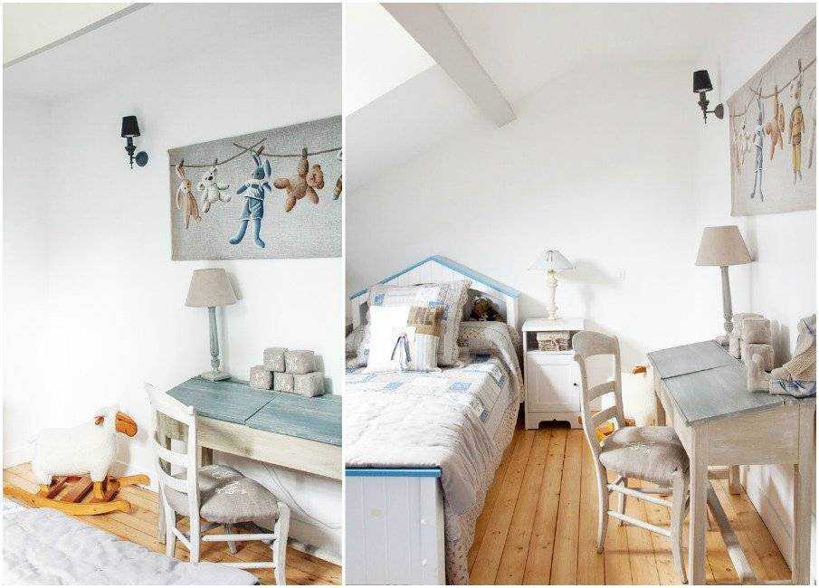 К выбору элементов декора нужно подходить творчески. Интерьер детской комнаты в стиле прованс подчёркивается обилием текстиля. Это должны быть только натуральные ткани с незамысловатым узором, который будет соответствовать по цветовой гамме основному дизайну. Для того чтобы гармонично объединить элементы декора, используйте одинаковые мотивы для штор, постельного белья, чехлов на стулья.