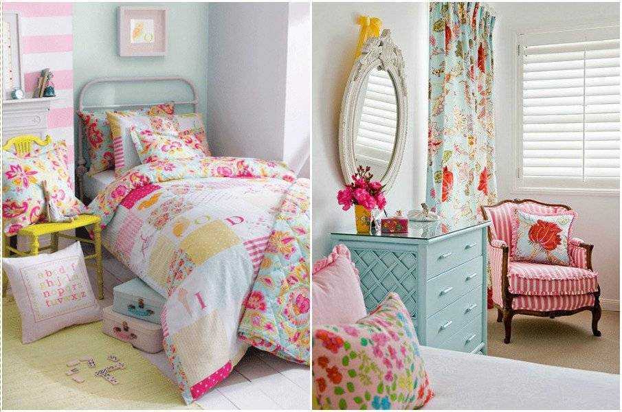 Очень естественно и стильно в детской комнате смотрятся покрывала и декоративные подушки в лоскутной технике. Шторы можно украсить с помощью рюшей и оборок. Но здесь главное не увлекаться и не превратить прованс в шебби-шик.