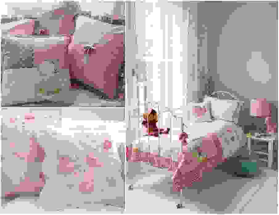 Спальня девочки обычно выполняется в персиковых, нежно-розовых, лавандовых или бежевых тонах. Кровать дополняется трикотажным покрывалом, меховым или овчинным пледом и множеством подушек с абстрактным, геометрическим или национальным принтом. Над спальным местом можно расположить балдахин из ткани нежного пастельного оттенка.
