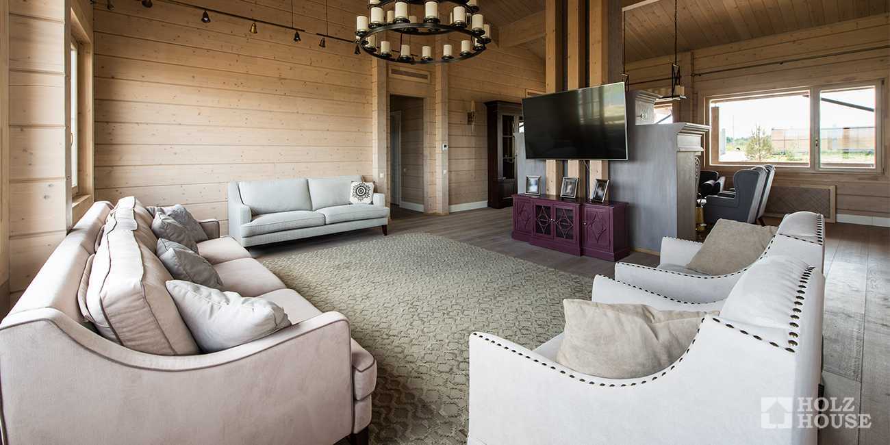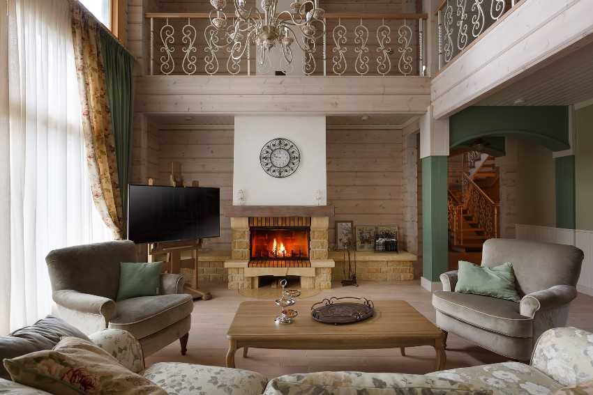 При планировании стиля для интерьера гостиной в деревянном доме, большинство людей останавливают свой выбор на модерне, провансе или шале. Гораздо реже склоняются к современным техно или хай-тек.