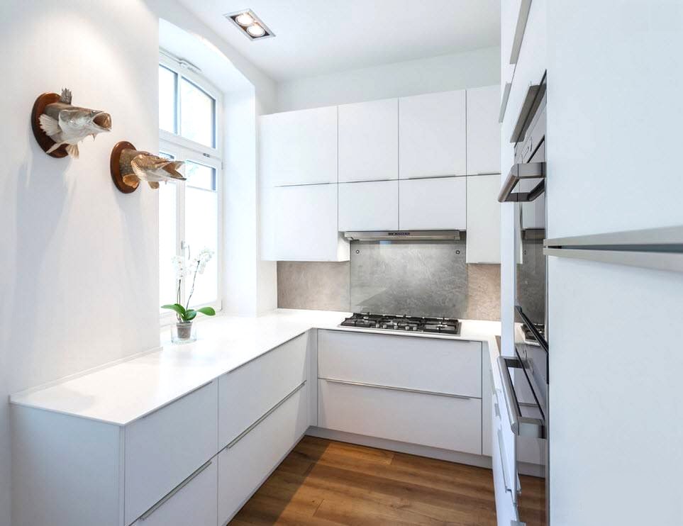 При выборе такого варианта нужно обратить внимание на компактность размещения рабочей зоны и удобство при приготовлении пищи.