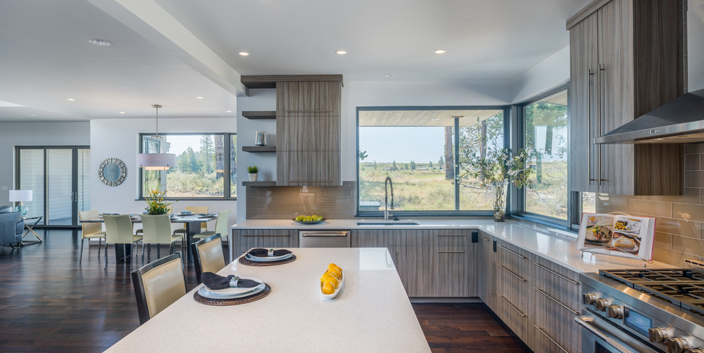 Кухня в доме с панорамными окнами