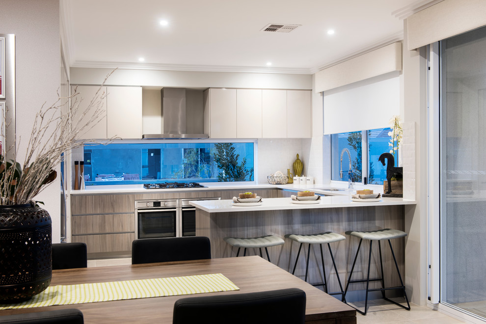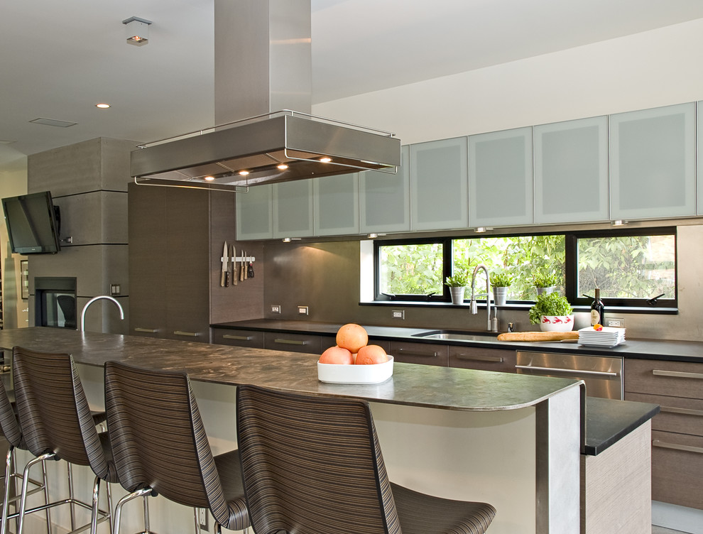 Такое расположение предметов интерьера хорошо подойдет для кухни в стиле модерн