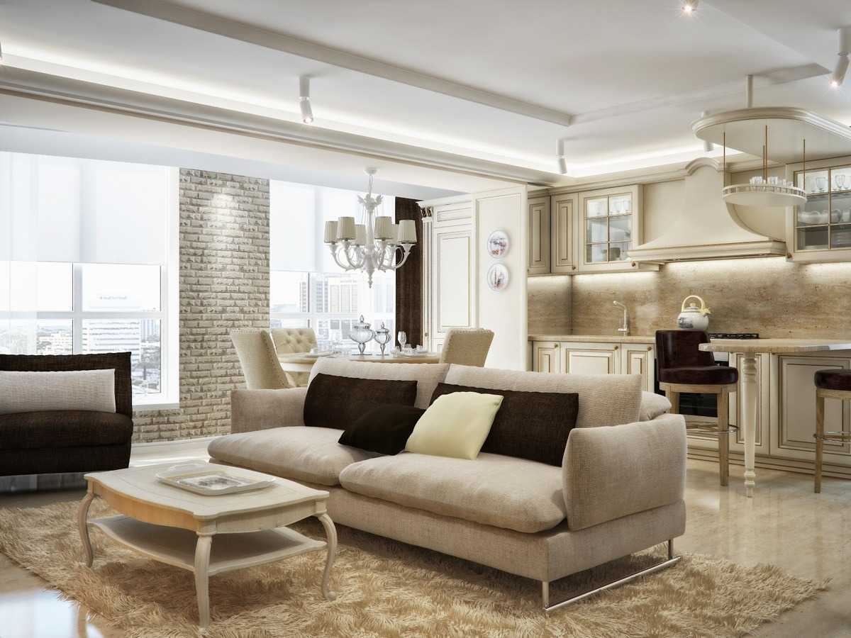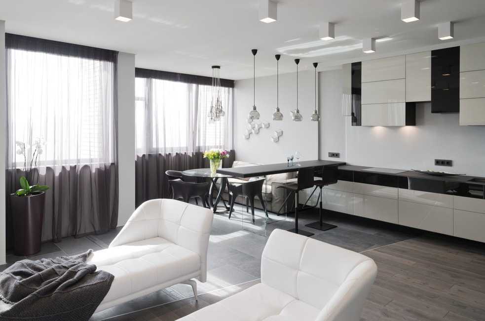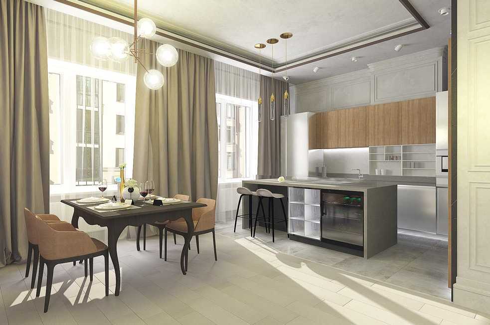 Дизайн проект кухни-гостиной 30 кв. м: разделение зон