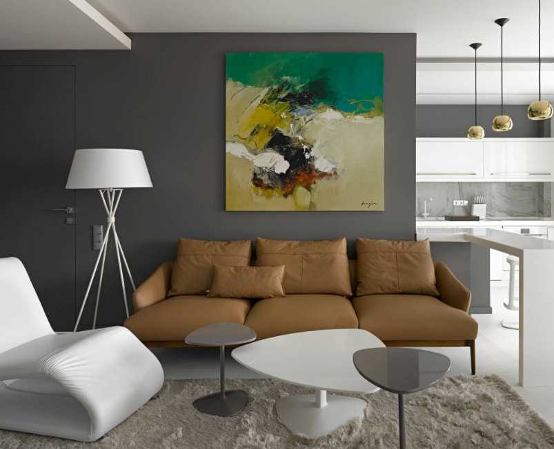 Гостиная вторая по важности зона в совмещённой комнате или студии. Площадь в 30 кв. метров позволяет не ограничиваться в дизайне интерьера, подбирая любые стили