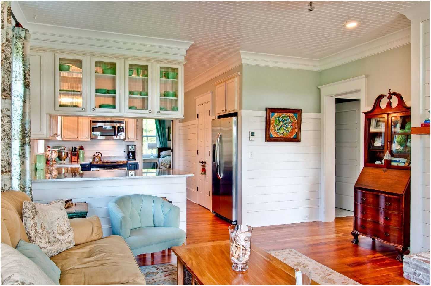 Прежде, чем приступать к оформлению, обязательно рассмотрите вариант зонирования кухни и гостиной. Разделив их при помощи не слишком громоздкой детали, вы заметите, насколько более организованным будет выглядеть пространство. Одним из самых популярных способов зонирования является покрытие пола разными материалами или, как вариант, коврами. Некоторые предпочитают разделять комнату и кухню при помощи окрашивания в разные цвета. Или же использовать для этого различные материалы, такие как плитка или ламинат.