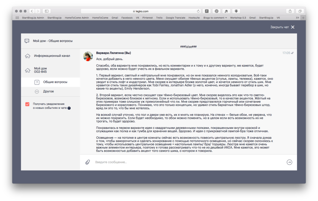 Поскольку все согласования были уже сделаны, то на этом этапе я просто ждала визуализации проекта, чтобы лучше представлять, как в итоге та мебель, которую я выбрала, будет смотреться в интерьере.