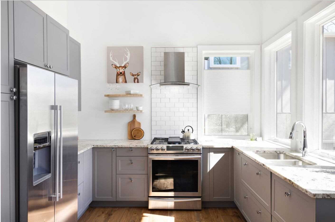 Не стесняйтесь заказывать высокую мебель, ведь в ней будет больше места для кухонной утвари. При ограниченном пространстве и, как правило, бюджете, такой подход поможет вместить максимум при минимальных затратах без создания эффекта склада.