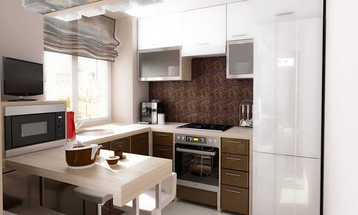 Выдвижная мебель и столы-трасформеры особо актуальны для дизайна современной маленькой кухни, фото проектов которых показаны ниже.