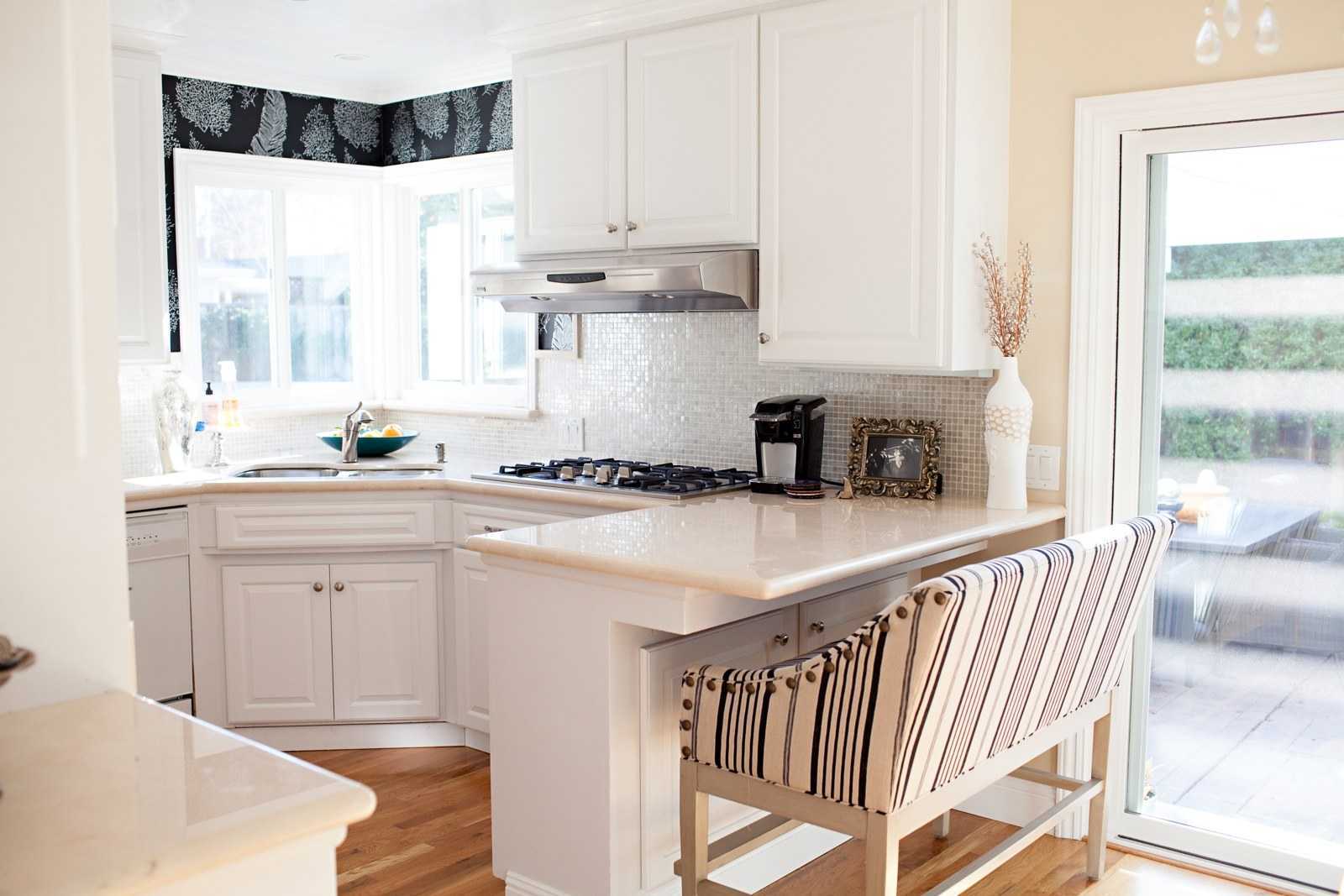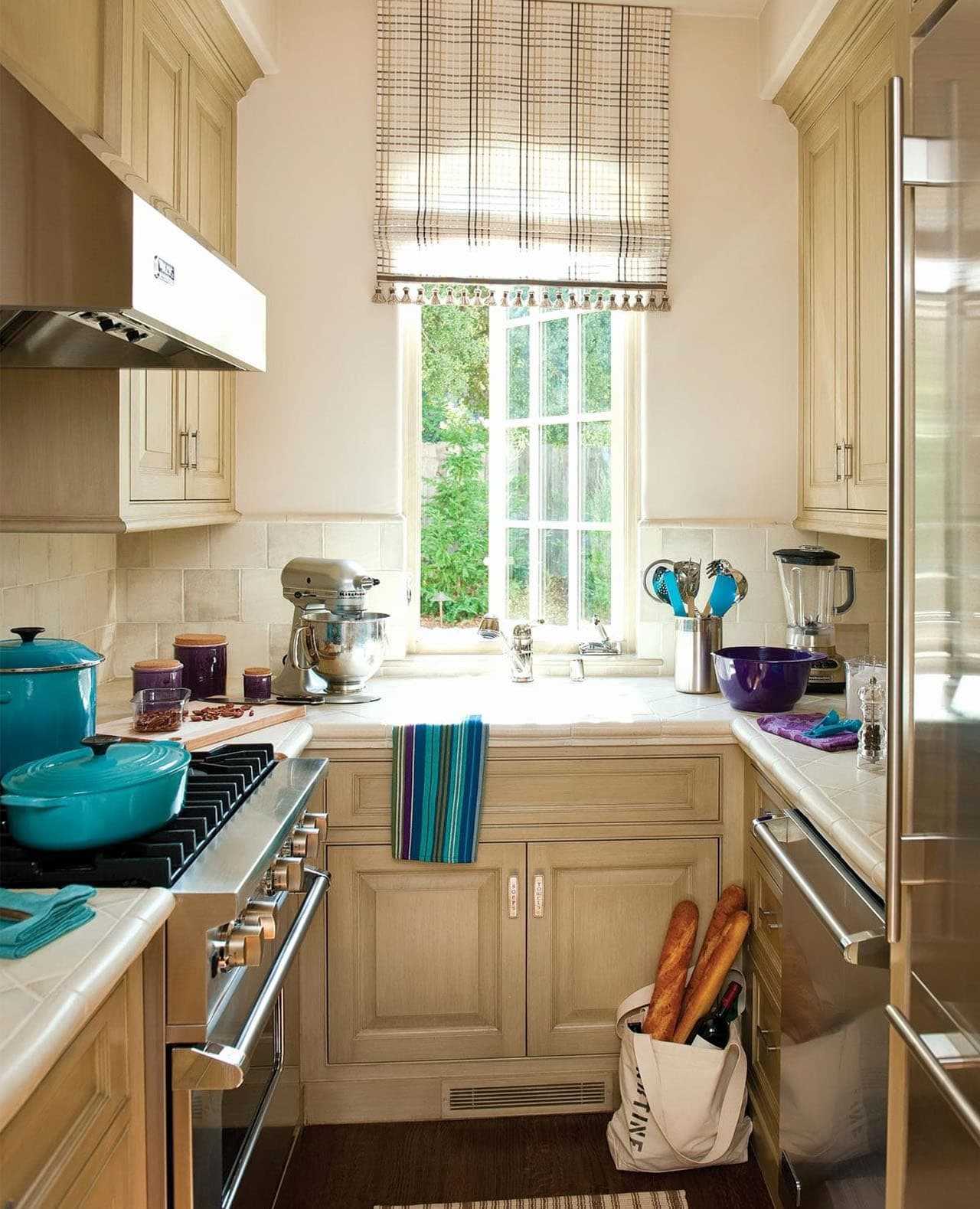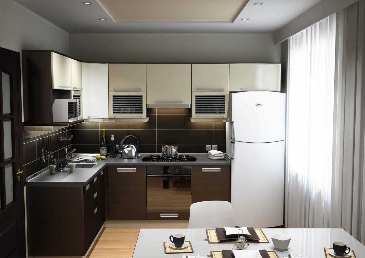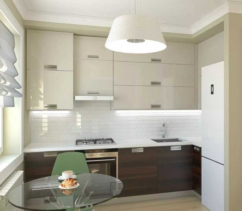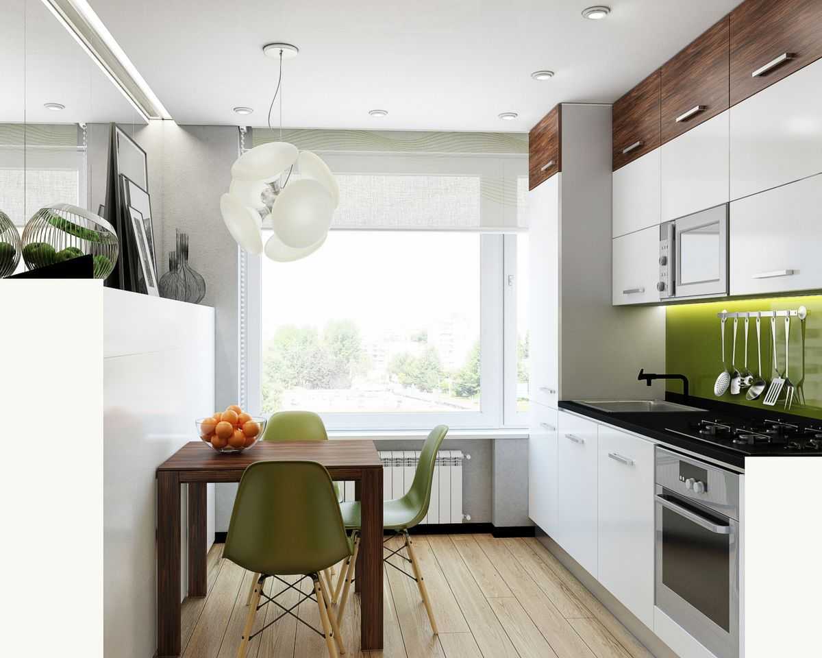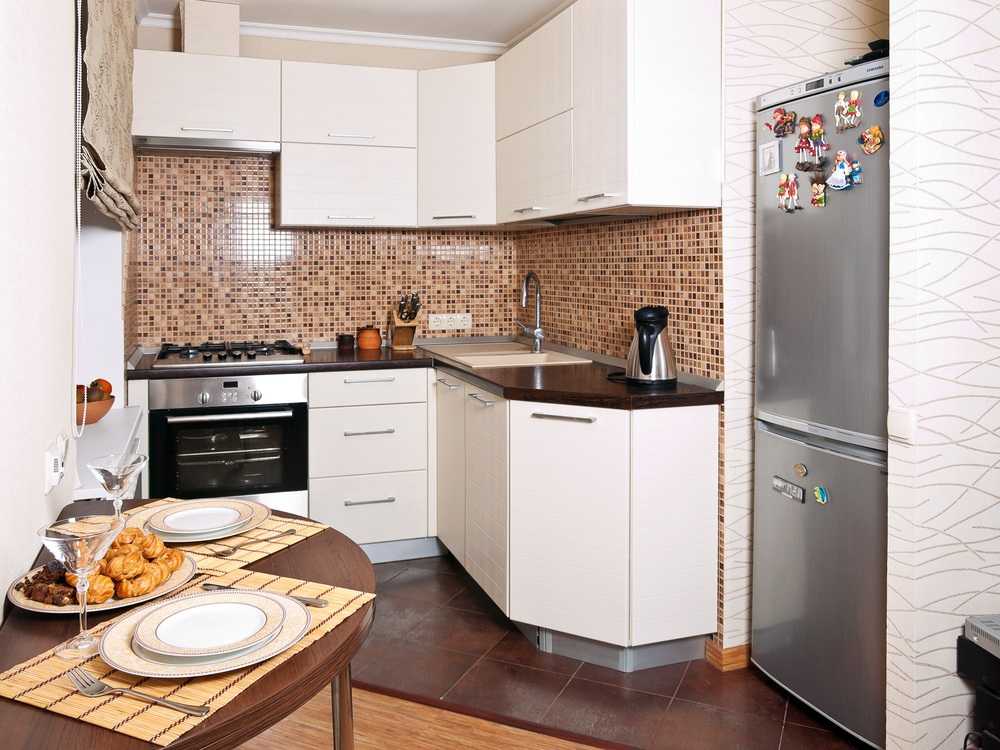 Существует несколько способов расположения основного набора мебели в маленькой кухне: