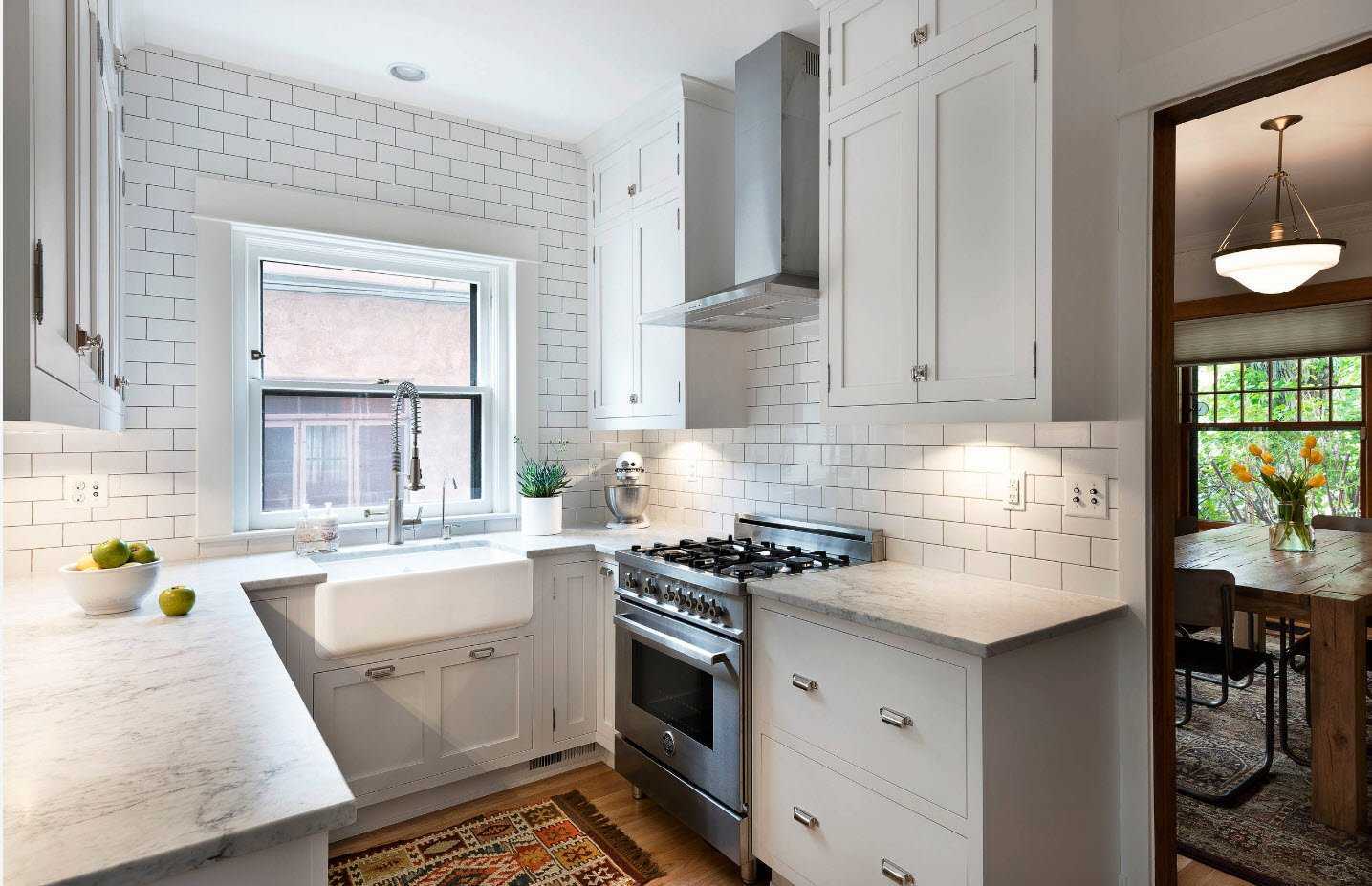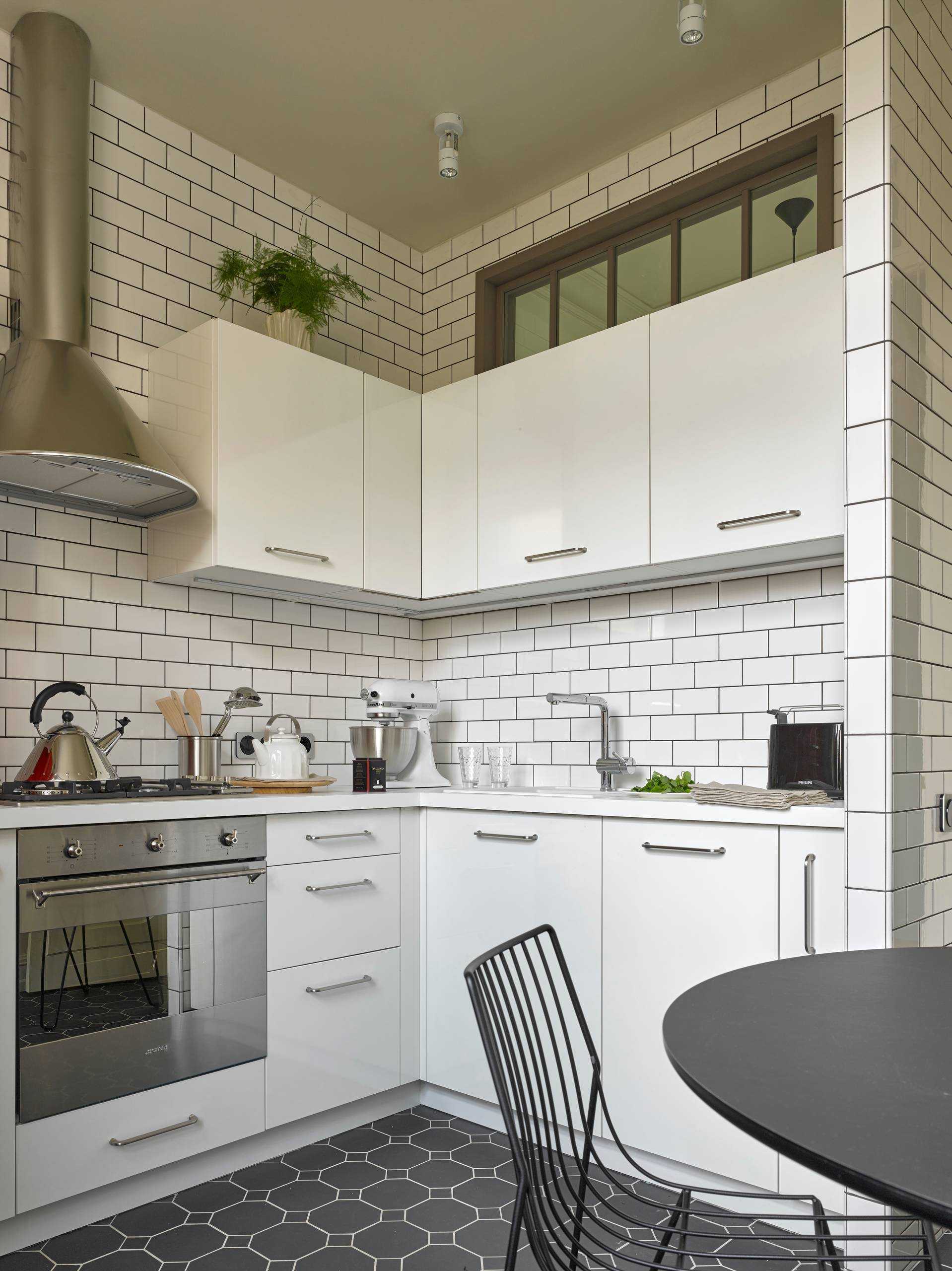 Добавь в интерьер своей кухни как можно больше белого цвета. Причем это касается не только отделочных материалов, но и кухонного гарнитура. Сейчас даже полы оформляют в светлой палитре. Это отличный прием для небольших помещений: белые плоскости, переходящие одна в другую, не имеют границ, что визуально расширяет пространство.