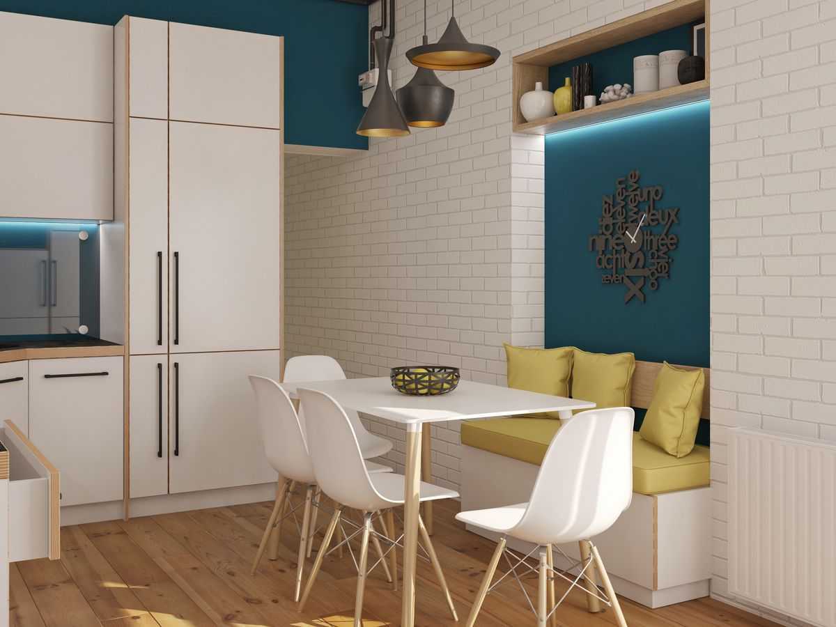 Способ расстановки мебели зависит от архитектурной специфики маленького помещения. Для увеличения площади в дизайне можно применять углубления, ниши, выступы и встраивать кухню.