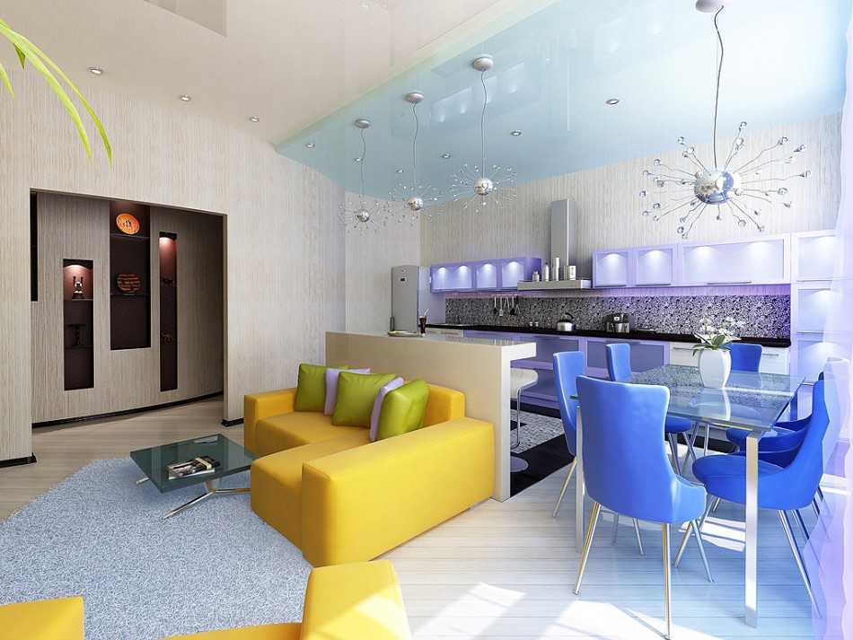 Проектируя дизайн, рекомендуется применять прием зонирования имеющегося пространства. Это особенно актуально, когда жилье оформляется для проживания в составе семьи. Чаще всего зонирование привносит условности, выполняется разными цветовыми оттенками и расстановкой мебели, дополнительные перегородки не применяются. Основная цель данного приема – максимально увеличить пространство, учтя при этом интересы всех проживающих.