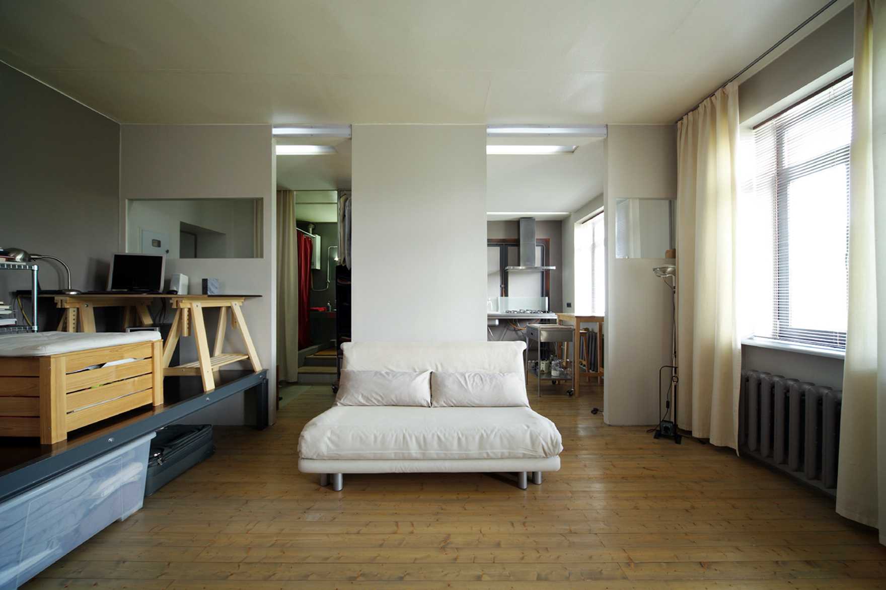 Роль спального места может выполнить раскладной диван, что позволит создать больше свободного пространства