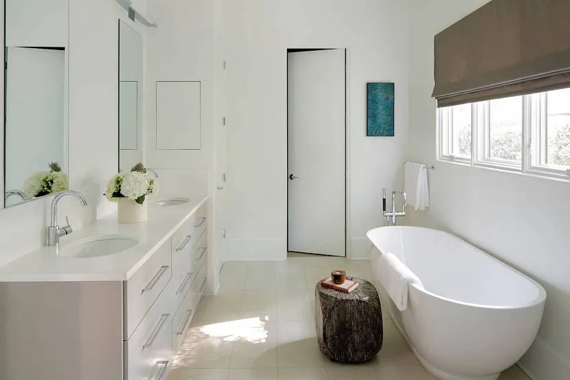 Светлая ванная комната с местом для купания под окномИсточник www.hd2architects.com