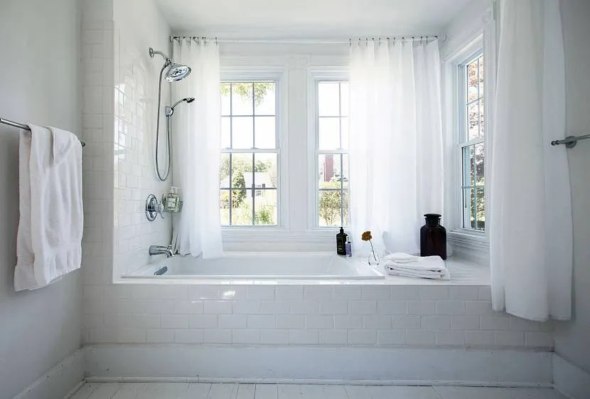 Если вы все-таки остановите свой выбор на занавесках, то лучше всего обзавестись для этой цели тканями, которые не испортятся от воздействия на них влажного воздуха, и их легко можно будет отстирать.