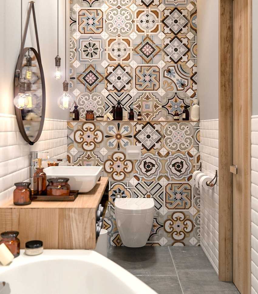Также вместо наскучившего белого актуальны глухие тона розового, зелёного, бирюзового, аквамарина, кораллового. Также можно не бояться использовать сантехнику необычных форм, с принтами, узорами и пр.