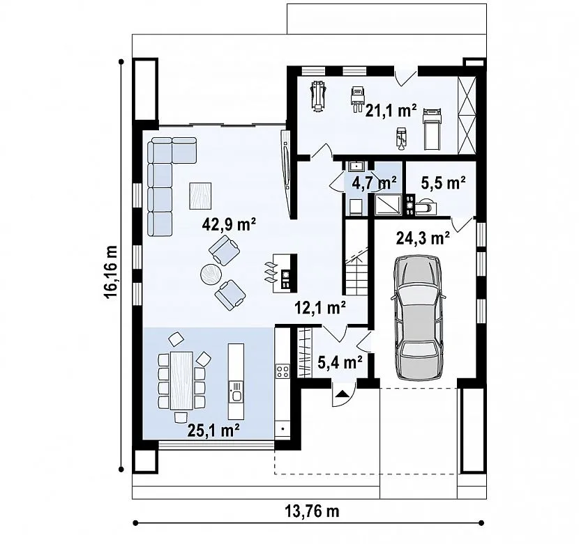 - Площадь первого этажа: 118,7 м2.
