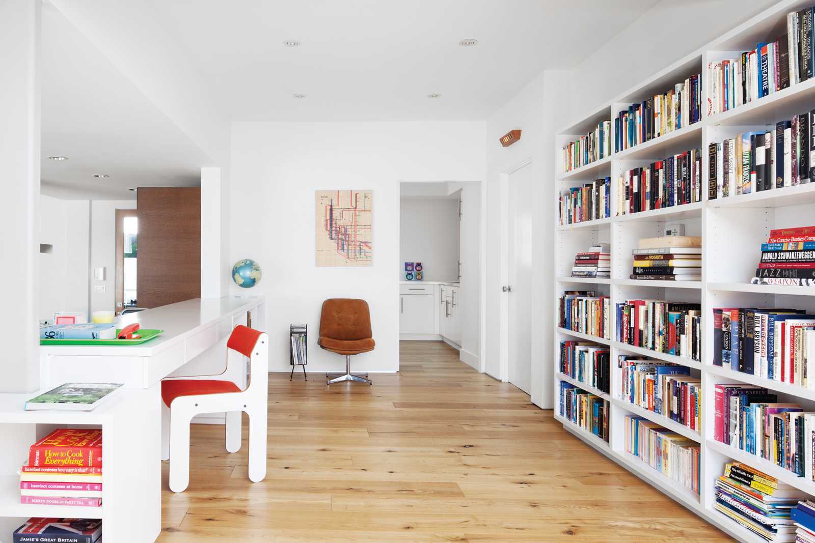 Если у вас есть возможность отдать под библиотеку отдельную комнату, то оставьте немного места, чтобы можно было установить новые стеллажи: книги приобретаются достаточно часто и рано или поздно перестанут помещаться в выделенные под них шкафы.