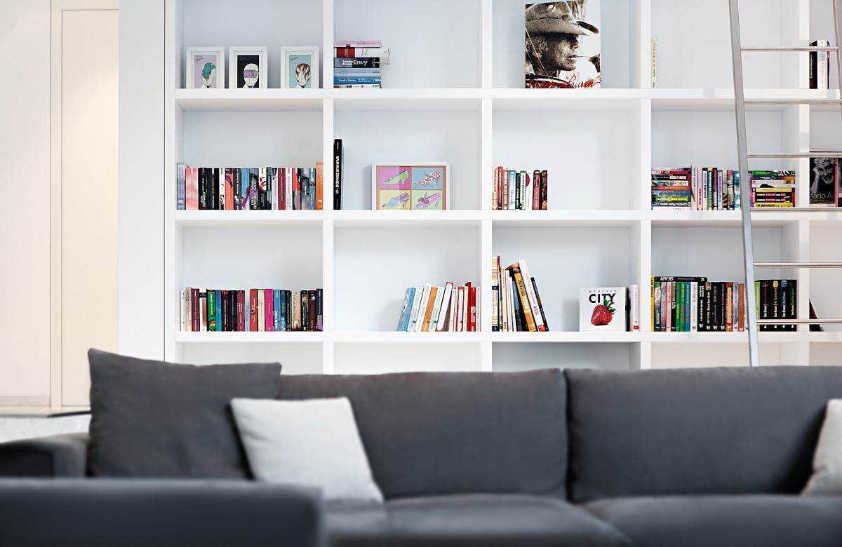 Прелесть решения в том, что такую мини-библиотеку можно организовать в любом уголке квартиры, возле любой стены и при этом не нарушить основного принципа хранения литературы – ее доступности для регулярного использования.