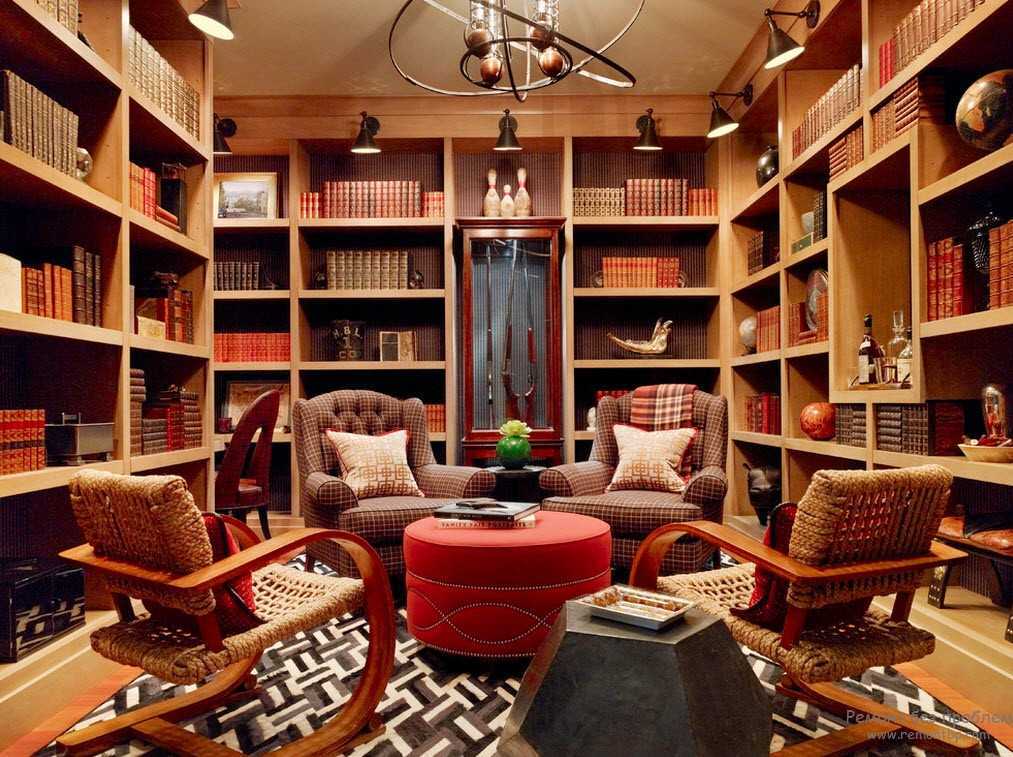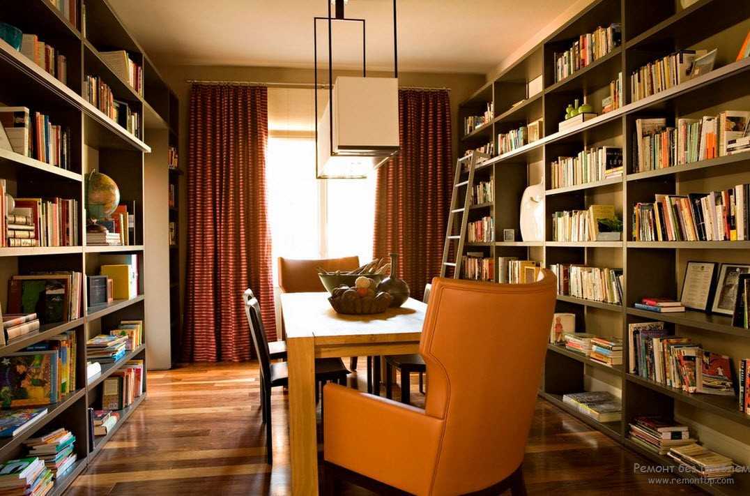 Статья будет полезна тем, в чьем доме очень много книг. Показаны в основном примеры того, как целое помещение можно занять книгами, оформление подойдет для больших коттеджей. Но есть и варианты оформления свободных уголков под место для чтения. На мой взгляд, коричневые тона особенно хорошо подходят для оформления библиотеки.
