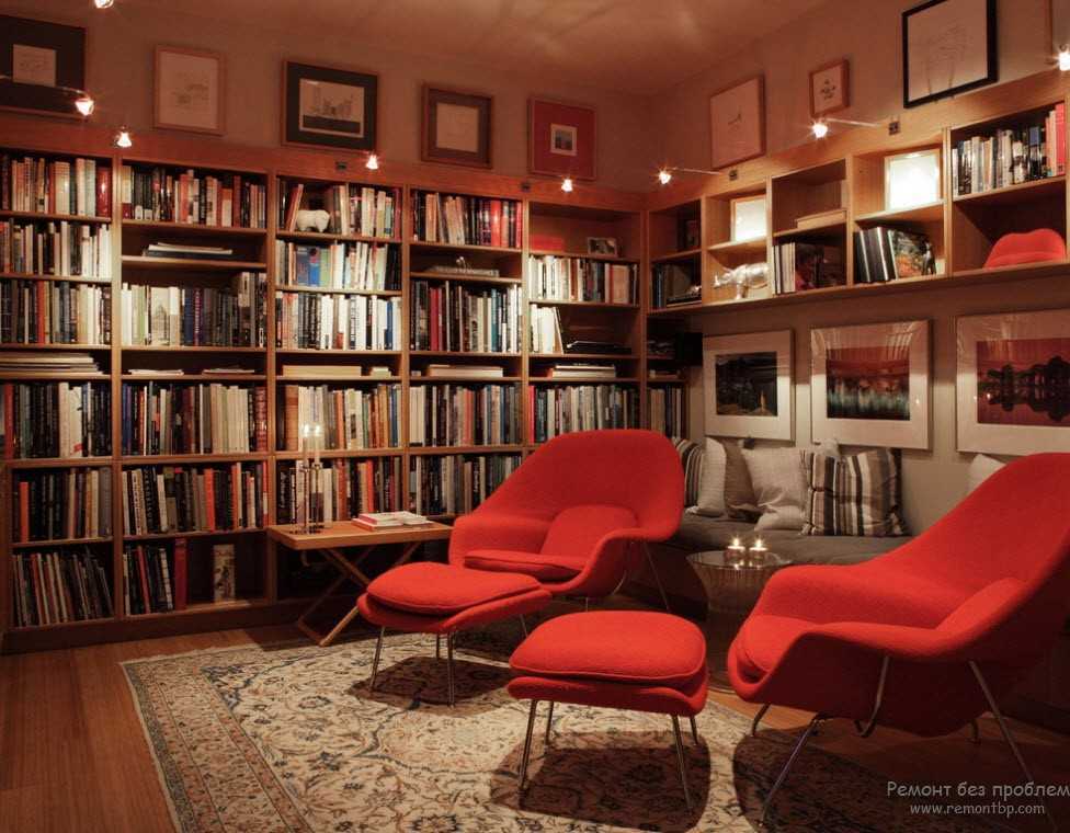 Прекрасно, если у вас будет возможность поставить в библиотеке письменный стол, удобный диван или кресло.