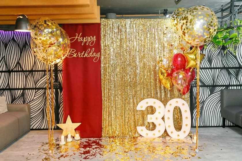 Вариаций для фотозоны на день рождения своими руками большое количество. Празднично и эффектно будут смотреться развешенные помпоны, китайские фонари, шары, звёзды.