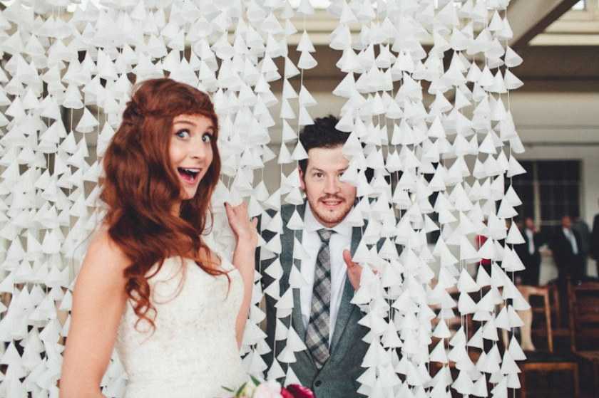 При создании фотозоны на свадьбу своими руками для элементов декора можно остановить выбор на белоснежных колокольчиках. Они делаются нетрудно и недолго, а композиция из них выглядит воздушной, лёгкой и является экономически выгодной.