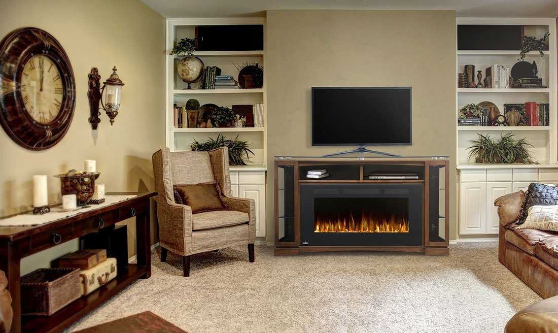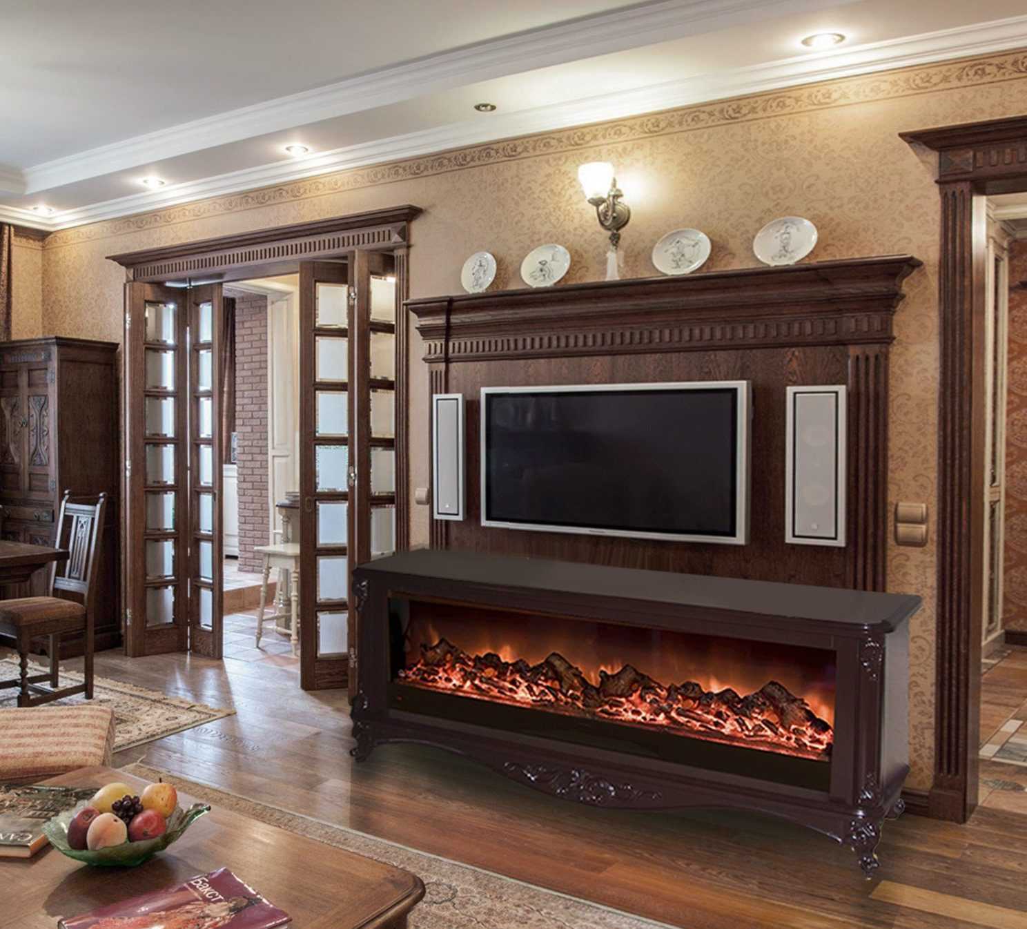 - При размещении источника огня под телевизором удачно сочетаются их функциональные особенности. Нагревательный прибор предназначен для обогрева помещения и создания уюта, а телевизионный приемник позволяет развлечь заскучавшего человека.