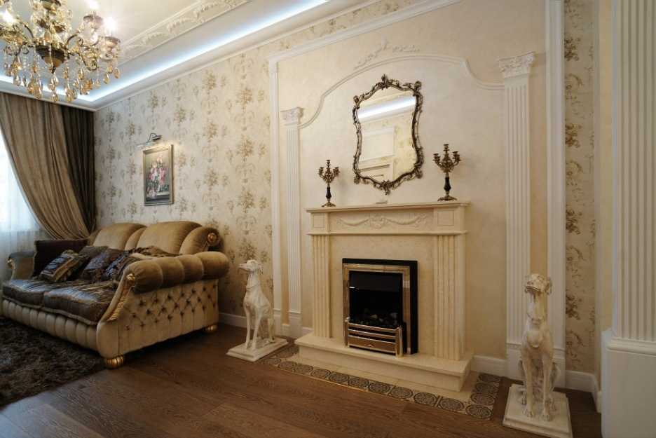 При выборе отделки домашнего очага надо руководствоваться особенностями стиля всего интерьера гостиной: