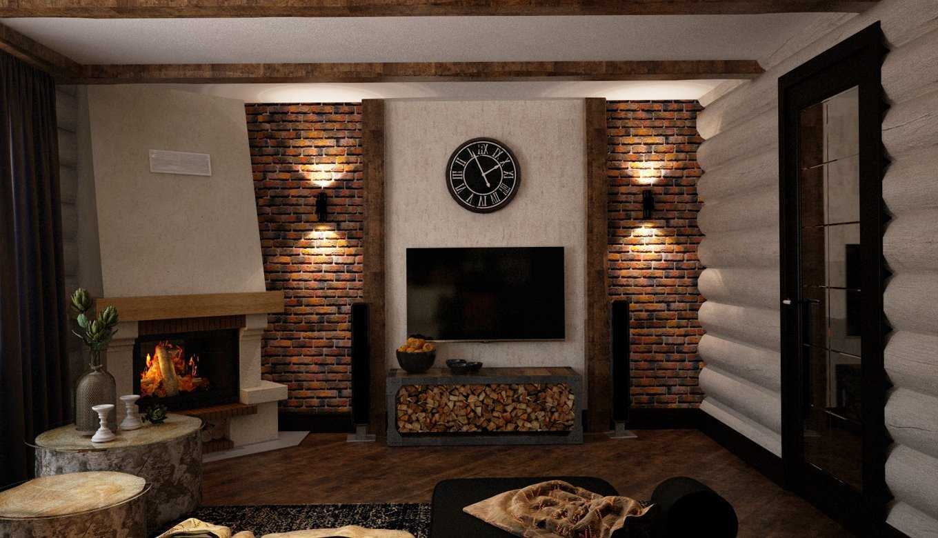 Интерьер с телевизором и камином нужно продумывать заранее. С деревенским стилем ТВ-прибор над отопительным прибором также трудно представить. Этот стиль имеет свои особенности.