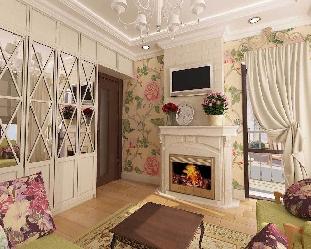 Оформление гостиной в стиле прованс до сих пор несет в себе отпечатки южных стран. Легкий оттенок старины в сочетании с романтикой позволяет создать действительно удивительный интерьер. Отделка камина в данном случае преимущественно выполнена в виде открытого кирпича. Кроме того в таком помещении всегда есть много деталей с цветочным принтом. Чаще всего стиль прованс используется для загородного дома или дачи, а в городских квартирах его реализуют крайне редко.