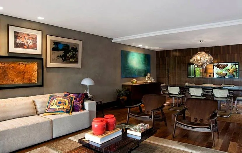 К примеру, у отделанной бежевой стены оригинально смотрится кресло сиреневого цвета или ярко красные подушки прекрасно подходят для дивана с серой обивкой.