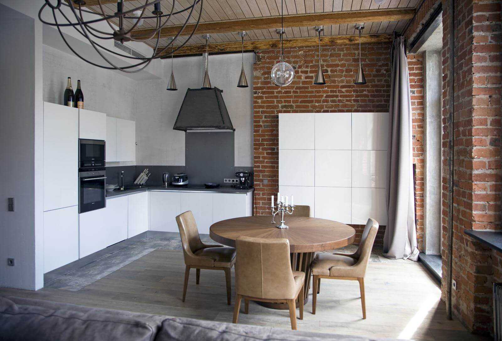 При выборе такой планировки первое, на что нужно обратить внимание, — это зонирование. Пространство визуально делится на зону готовки и отдыха