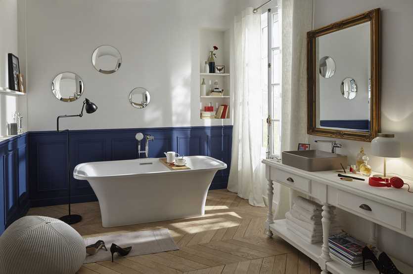 Изделие можно «выкрасить» в любой цвет, поэкспериментировать с аксессуарами, их формой. При выборе материала не обязательно ориентироваться на прошлые каноны, когда есть легкий, а также практичный акрил. Впрочем, медные или мраморные ванны можно встретить и сегодня, но в основном их изготавливают на заказ.