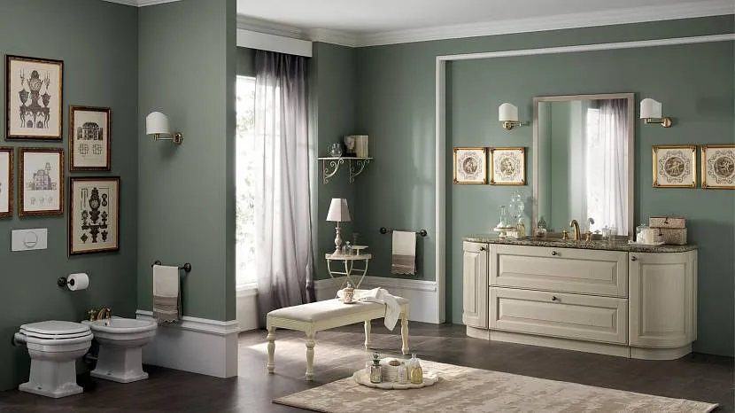 Оформление классической ванной в оливковом оттенке Источник scavolini.com.ru
