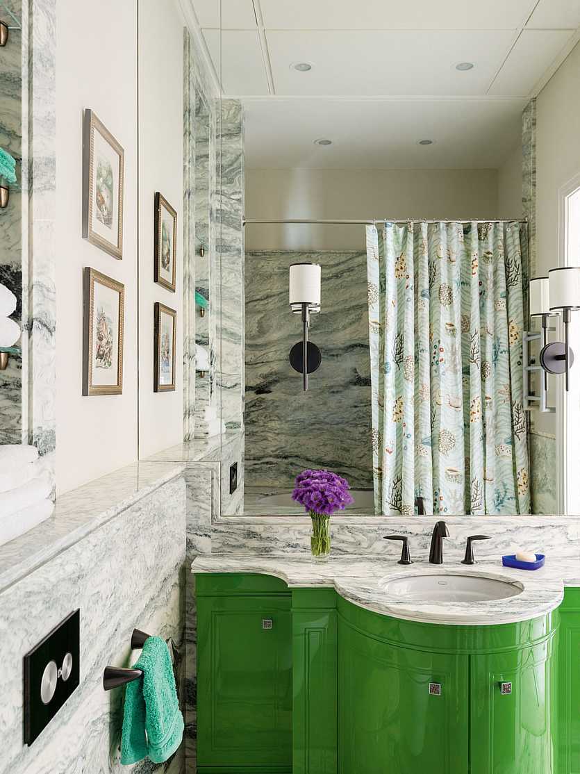 Зеленый. Еще один близкий спутник популярного эко-стиля. В сочетании с белым можно создать очень приятный дизайн, светлый, теплый. Если такую ванную комнату разбавить комнатными растениями, можно создать атмосферу настоящих тропиков. Нужно только убедиться, что растения хорошо переносят высокую влажность и перепады температур.